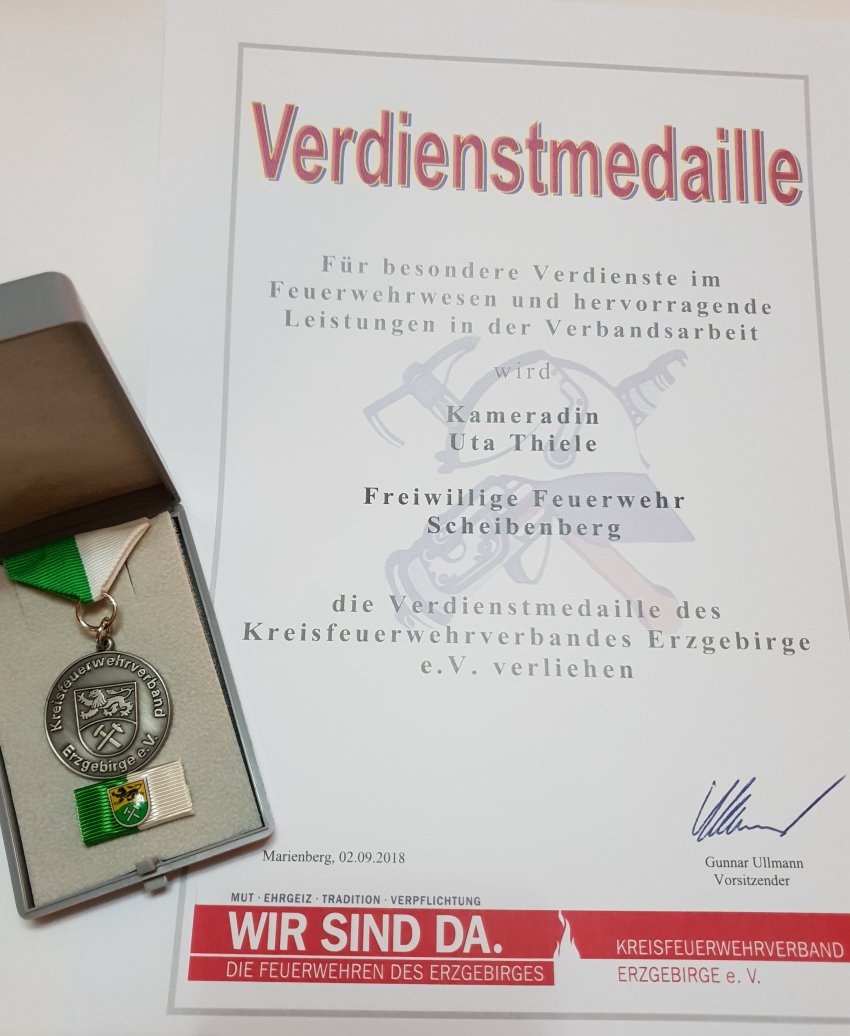Urkunde und Verdienstmedaille KFV ERZ