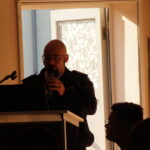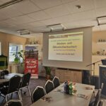 Danach ging es am Vormittag in die Vortragsreihe. Zunächst gab Paul Schaarschmidt einen Überblick über die Medien- und Öffentlichkeitsarbeit des KFV ERZ. Danach folgte der Hauptvortrag durch den Pressesprecher der Feuerwehr Dresden Michael Klahre, der auf professionelle aber trotzdem lockere und gut verständliche Art die Kameradinnen und Kameraden umfassend zur Pressearbeit an Einsatzstellen und allgemein, social media und viele wichtige Hinweise zum Thema informierte und umfassende Beispiele aus der Feuerwehrpraxis mitbrachte.